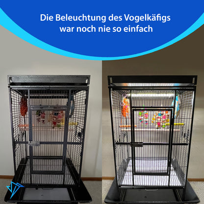 Unsere HappyBird Vogellampe mit Knabberschutz enthält alles, was Sie für die sichere Installation und Stromversorgung benötigen: ein eigenes Netzteil, Montagematerial und Edelstahl-Kabelbinder. Bitte beachten Sie, dass die Lampe keinen eigenen Schalter hat und an einen gewöhnlichen Lampentimer angeschlossen werden muss, damit Ihre Vögel eine konstante Lichtmenge erhalten. Die LEDs sind auch für feuchte Umgebungen geeignet und sicher vor Flüssigkeiten, die Sie beim Reinigen des Käfigs versprühen könnten.