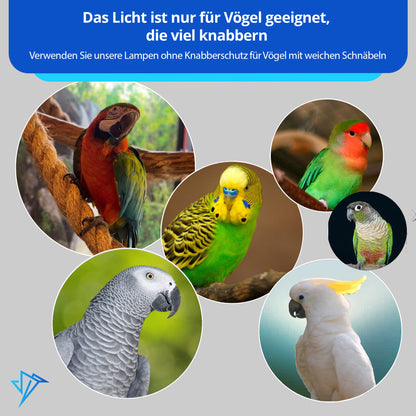 Sind Sie unsicher, welche Beleuchtung für Ihre Vögel die richtige ist? Suchen Sie nach einer natürlich aussehenden Lampe, die sowohl Ihnen als auch Ihrem Vogel gefällt? Wünschen Sie sich eine sichere Lösung für die besonders knabberfreudigen Vögel? Dann ist die HappyBird Vollspektrum-LED-Haustierlampe mit Knabberschutz genau das Richtige für Sie!