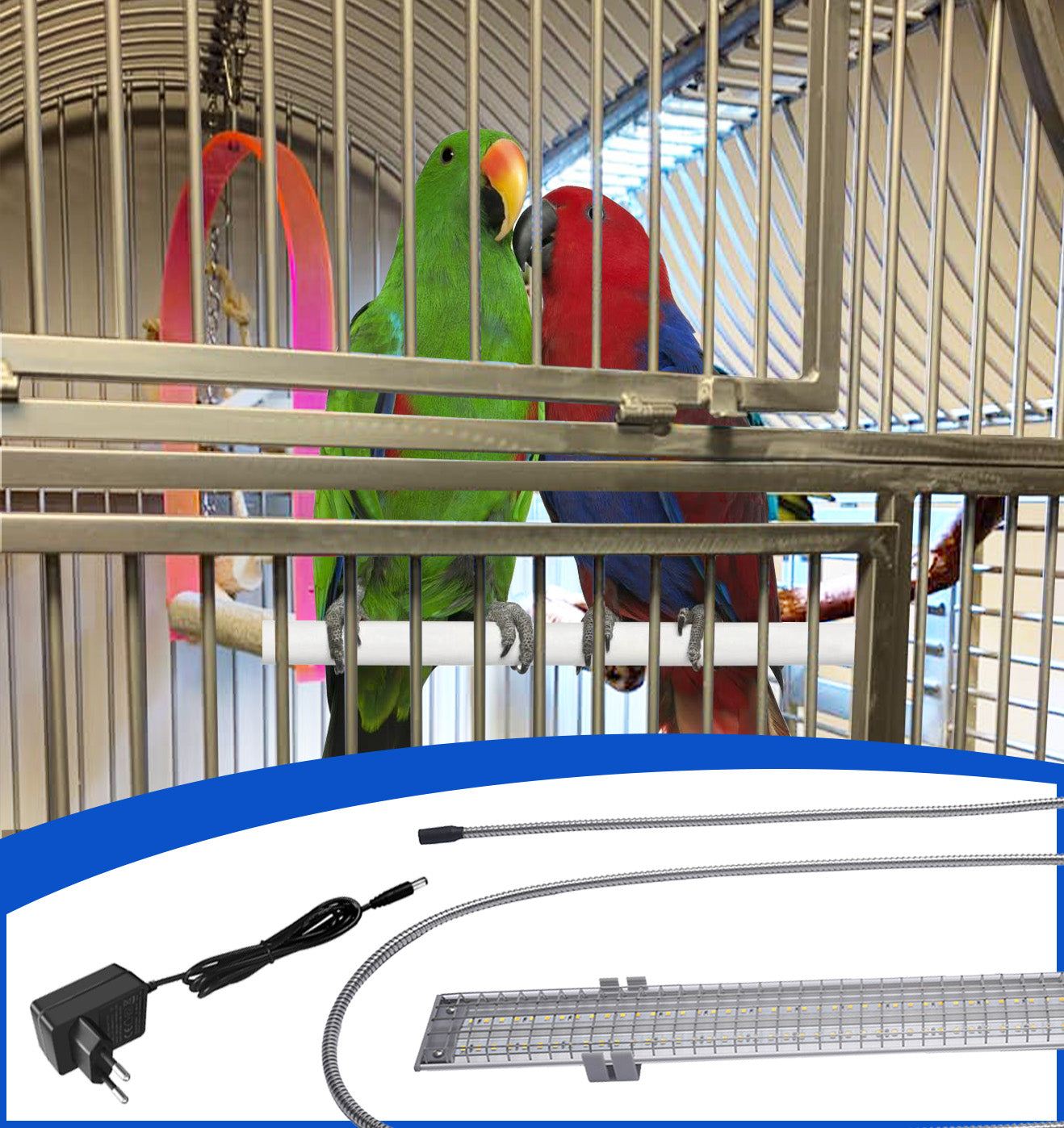 Vollspektrum-LED-Lampe für Papageien und andere knabberfreudige Vögel in den Längen 60 cm, 45 cm und 25 cm.